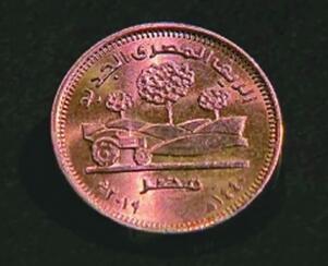 图为刻有新农村计划的埃及纪念硬币。肖天祎供图