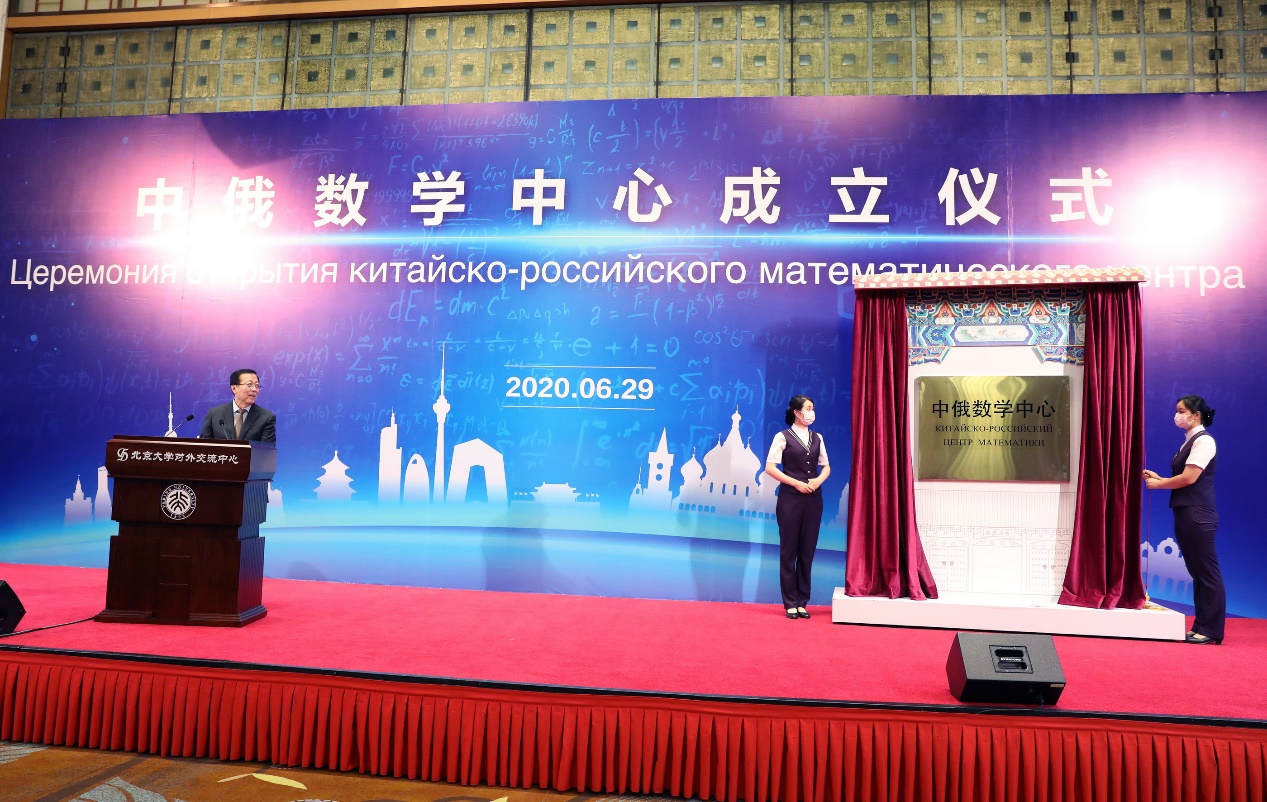 2020年6月29日下午,中俄数学中心成立仪式在北京大学英杰交流中心阳光厅举行。北京大学与莫斯科国立大学和中俄两国兄弟院校远程视频连线,共同见证中俄数学中心成立。莫斯科大学校长萨多夫尼齐,国家自然科学基金委员会数学物理科学部主任江松院士,联合国教科文组织教育信息技术研究所董事会主席展涛,北京大学党委书记、校务委员会主任邱水平,北京大学校长郝平,数学“双一流”建设联盟23家单位代表,以及两国数学力学领域的专家学者参加成立仪式。北京大学副校长张平文院士主持仪式。