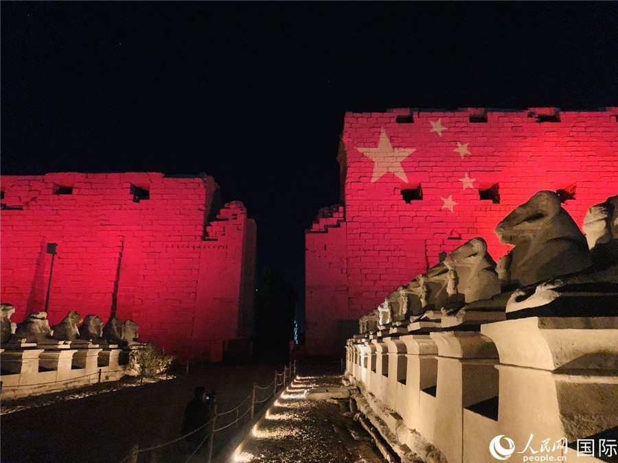 卢克索卡尔纳克神庙点亮“中国红”披上五星红旗