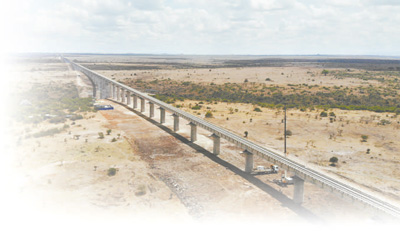 由中国企业承建的肯尼亚内罗毕—马拉巴标轨铁路(内马铁路)内罗毕国家公园特大桥。